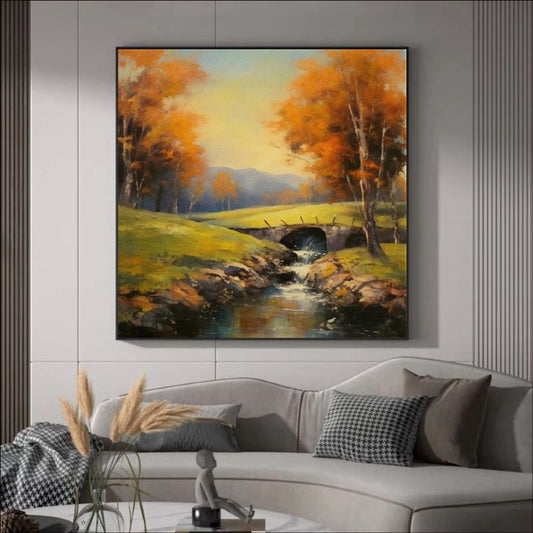 Peaceful Autumn Retreat: Stream Under a Rustic Bridge