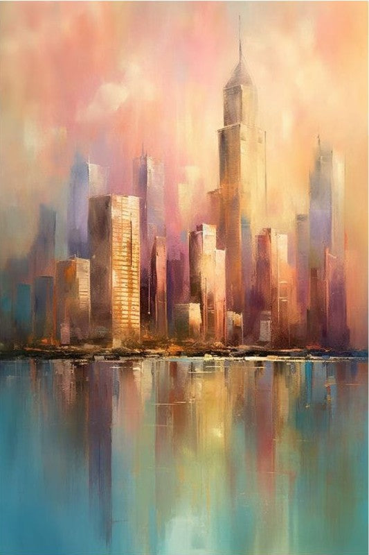 City Skyline at Sunrise: A Soothing Abstract Reflection
