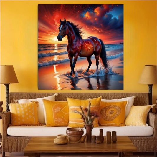 Ocean's Flame - A Horse's Journey - Majestic Beauty in a Sunset Landscape
