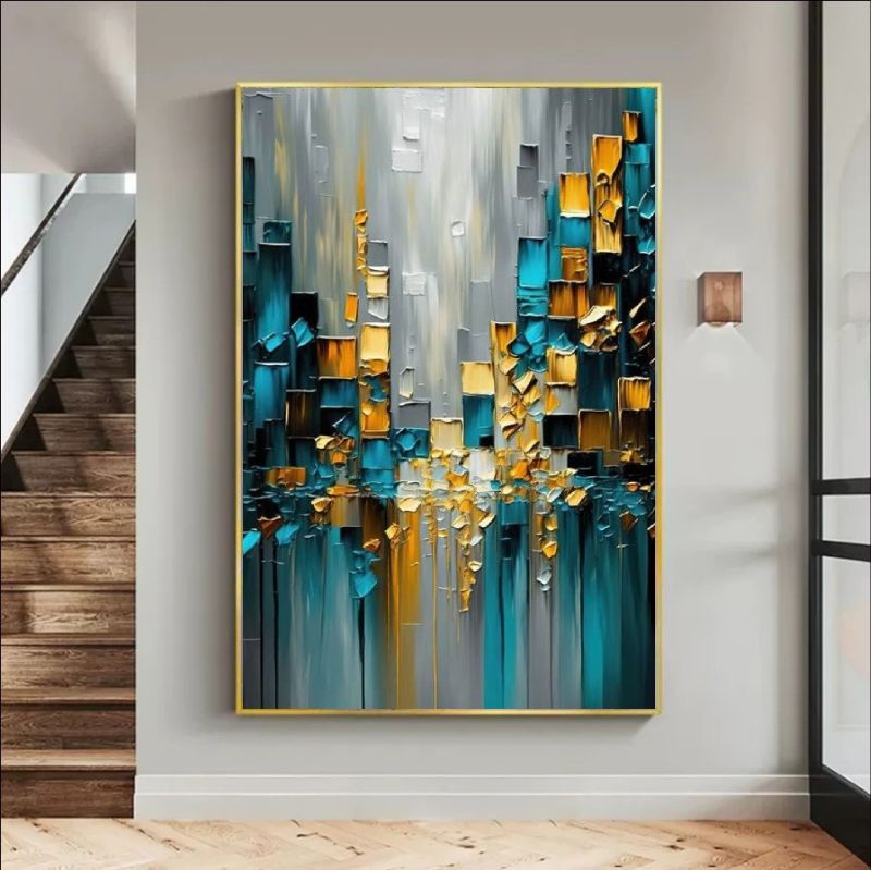 Capture the magic of twilight with City Glow, a modern cityscape canvas painting that blends warm lights and urban charm. This glowing skyline wall art adds depth and sophistication to contemporary living rooms, offices, or loft spaces.