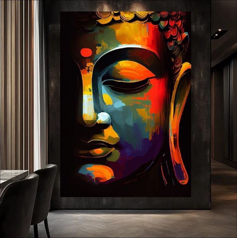 Crafted for a global audience, this vibrant Buddha painting serves as a centerpiece for those seeking a balance of traditional and modern aesthetics. Ideal for creating a calming ambiance or gifting to loved ones, "Colorful Zen" brings peace and inspiration to any space.