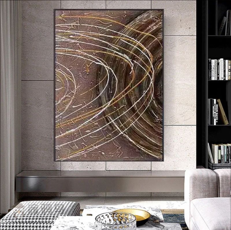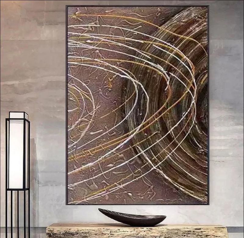 Dive into the mesmerizing world of "Cosmic Swirls," an abstract artwork that captures the essence of celestial movements and universal harmony. Featuring a rich interplay of earthy browns, shimmering golds and dynamic swirling lines, this piece evokes the feeling of orbiting through space. The textured background and flowing patterns create a sense of depth and motion, making it a perfect centerpiece for modern, contemporary or eclectic spaces.