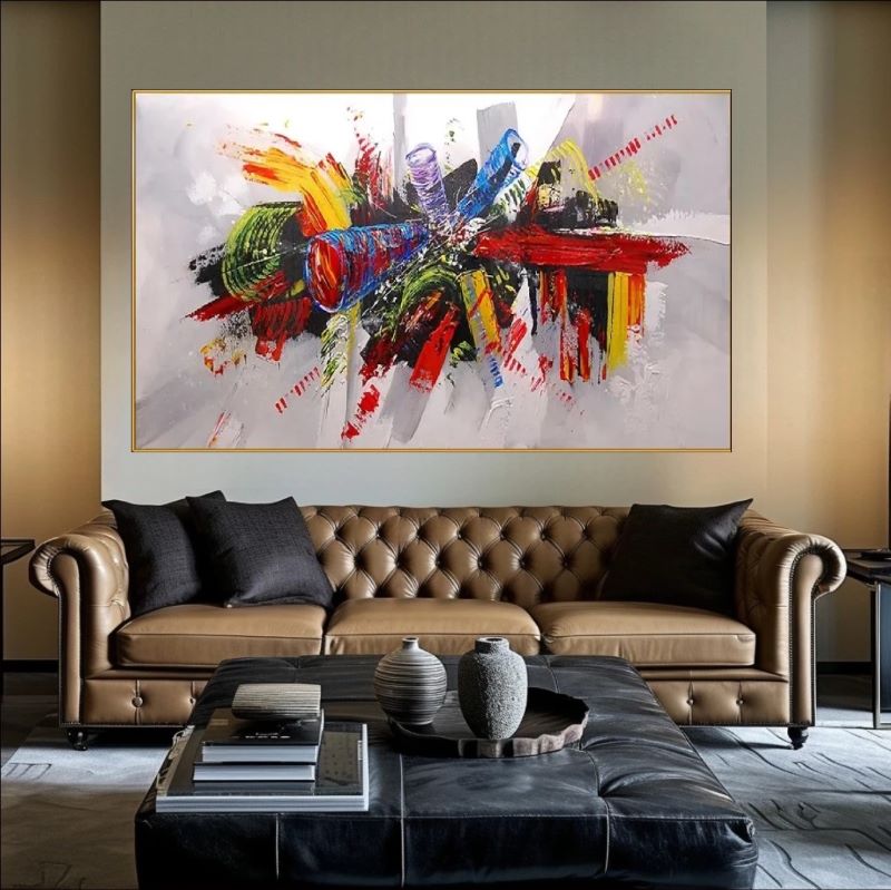A Symphony of Motion and Color Chromatic Burst is a high-octane piece of abstract expressionism that injects raw energy and movement into your space. Designed for wide walls and modern interiors, this panoramic artwork serves as a visual celebration of dynamism and creativity.