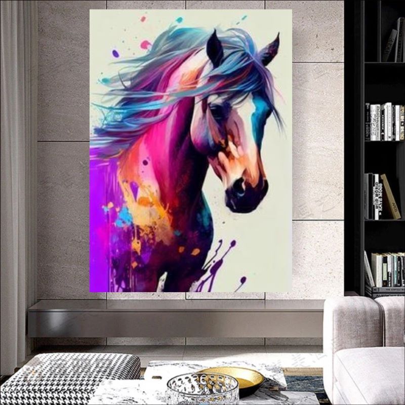 This premium-quality canvas art is an ideal choice for horse enthusiasts, art collectors, and anyone seeking to add a splash of creativity and elegance to their living space. Available in multiple sizes, this artwork enhances any room, from your living room to your office, with its captivating presence.