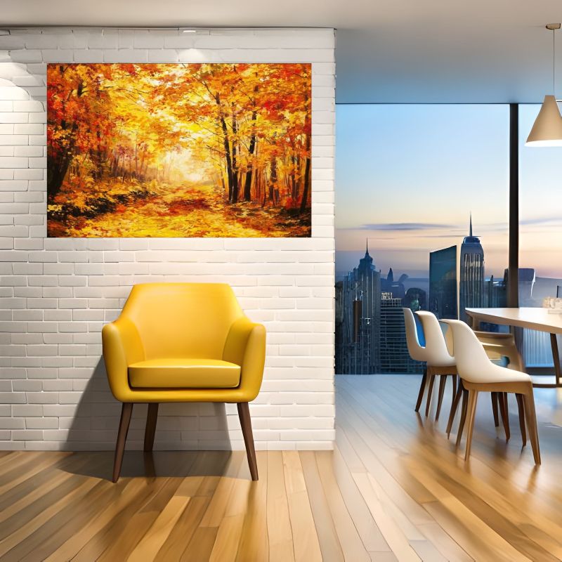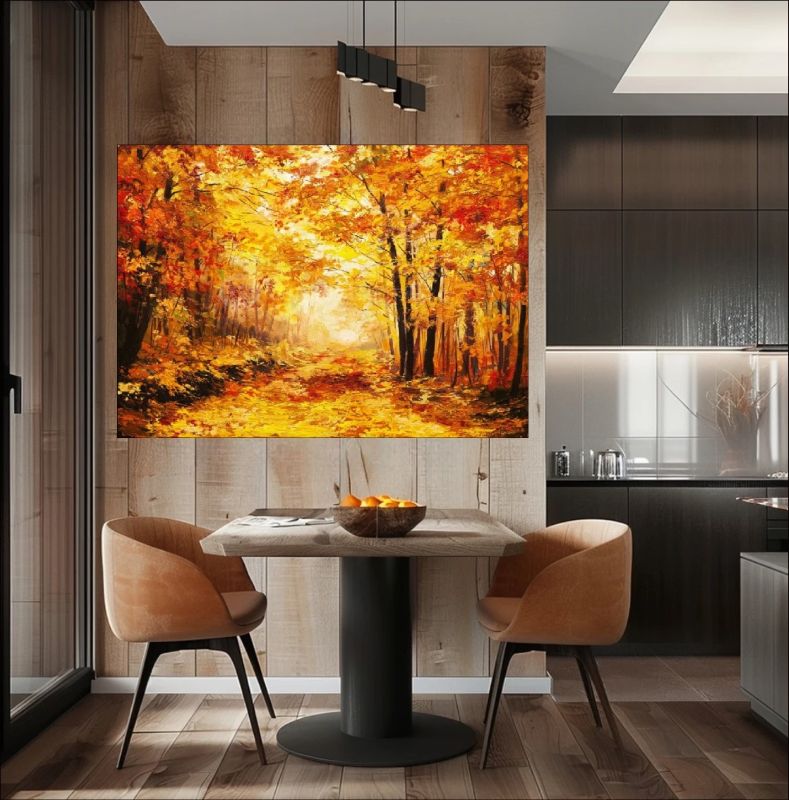 Transform your space with "Golden Serenity," a radiant autumn forest painting that captures the beauty of nature bathed in golden hues. This vibrant landscape showcases the warmth and brilliance of fall, making it an ideal choice for those who appreciate seasonal art. Perfect for homes, offices, or galleries, this artwork blends beautifully with any interior style. Whether you're searching for autumn-themed wall décor, a golden forest painting, or a timeless piece that evokes serenity and natural beauty, this luminous artwork is a stunning addition to any global art collection.