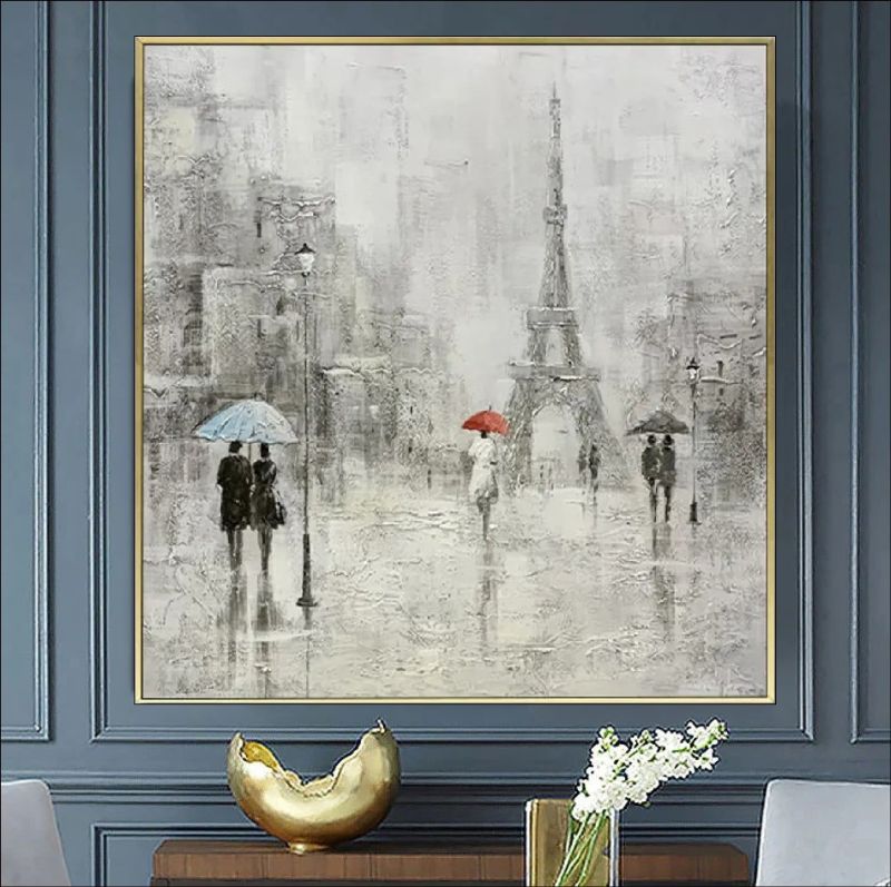 A Stroll Through the City of Love Paris Rain & Romance is a chic piece of impressionist cityscape art that captures the timeless allure of a rainy day in France. Designed for Francophiles and hopeless romantics, this painting brings the misty, magical atmosphere of Paris right into your living space.