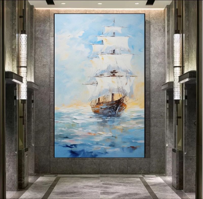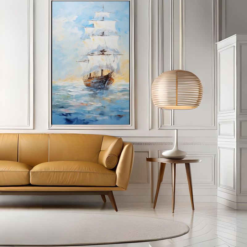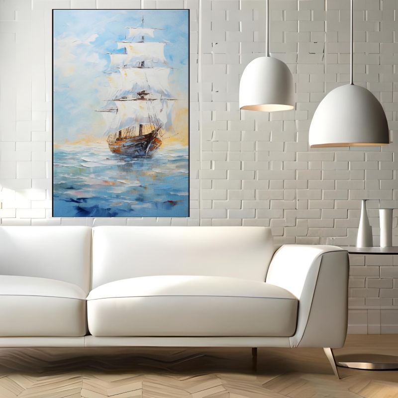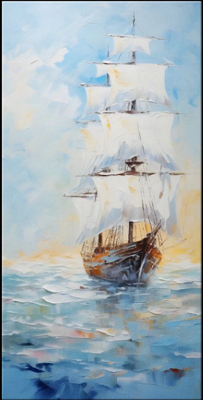Bring the tranquility of the sea into your space with this stunning artwork of a ship sailing on calm, blue waters under bright, serene skies. Perfect for nautical enthusiasts, coastal decor lovers, and art collectors, this piece captures the beauty of maritime journeys and the elegance of white sails gliding through the ocean. Featuring vibrant details and soothing colors, it's ideal for creating a peaceful atmosphere in homes, offices, or vacation rentals. Whether you're searching for "serene nautical art," "tranquil sailing paintings," or "calm ocean decor," this timeless masterpiece is designed to inspire and elevate any setting.