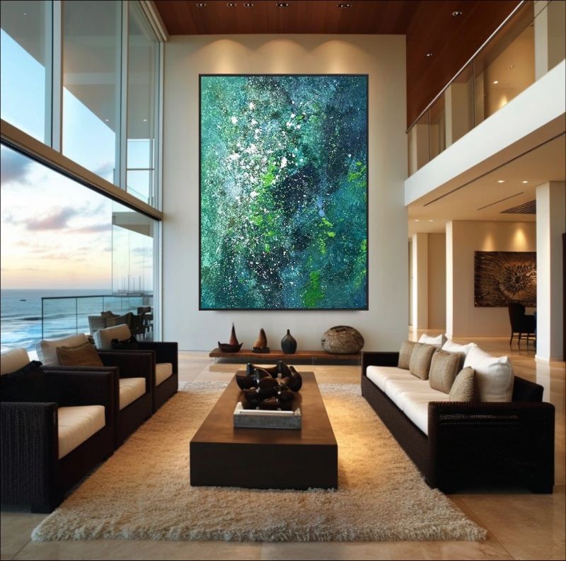 "Stardust Grove" – A mesmerizing handmade painting that blends celestial allure with earthy tones, perfect for elevating your living space with a touch of cosmic elegance. Discover the beauty of abstract handmade art at Soul Arts.