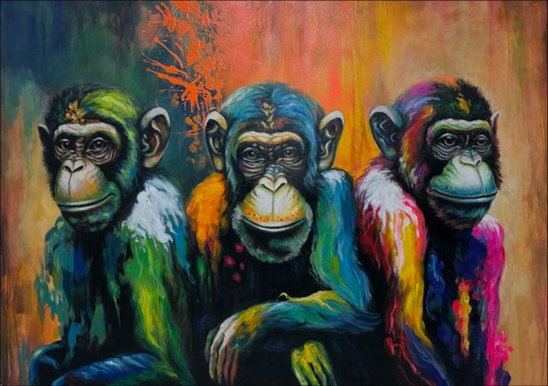 A Splash of Wild Creativity Vibrant Three Monkeys is an energetic piece of modern pop art that brings a bold, playful vibe to your walls. Reimagining the classic trio with a contemporary twist, this artwork is designed for those who love eclectic home decor and aren't afraid of color.