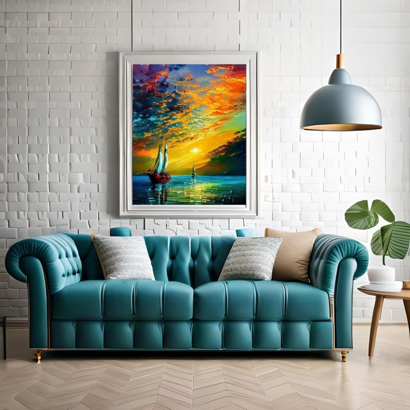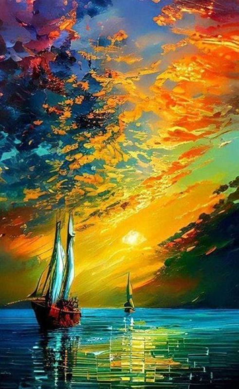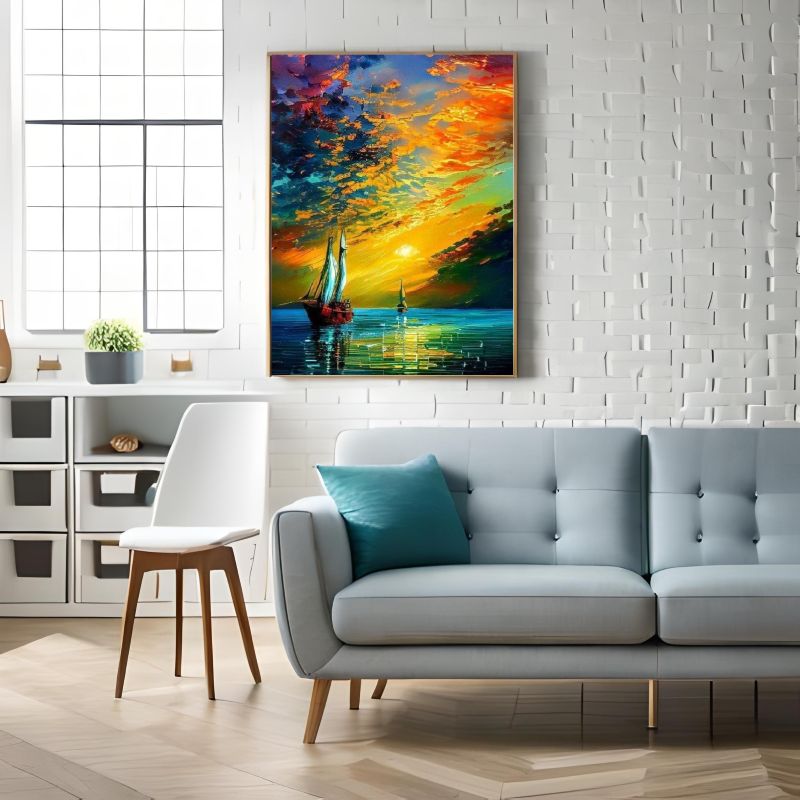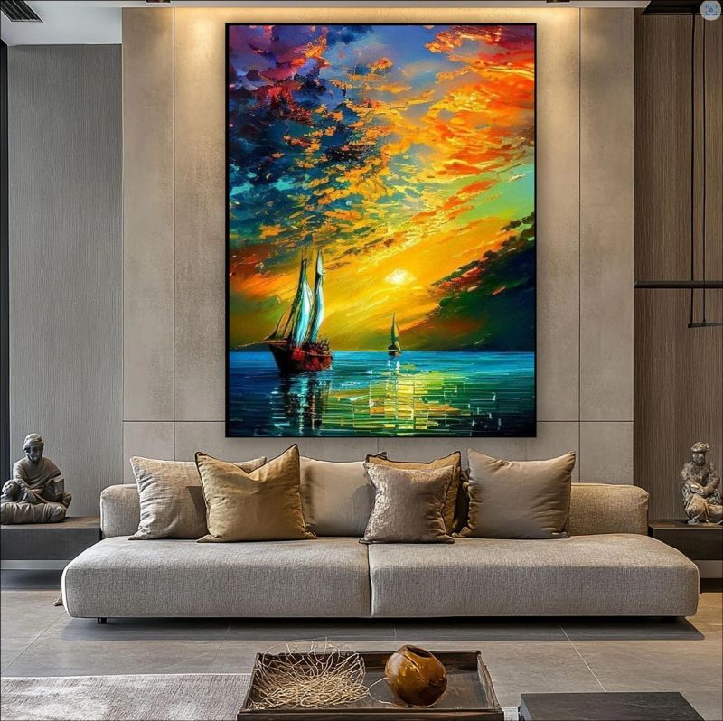 Immerse yourself in the captivating beauty of "Vivid Horizons: Sailboats in a Sea of Color," a stunning artwork that brings the vibrant hues of sunset to life. This masterpiece features dynamic skies, glowing reflections, and serene sailboats, making it ideal for those seeking "sunset sailing art," "colorful ocean paintings," or "vibrant seascape decor." Perfect for homes, offices, or galleries, this piece celebrates the harmony of nature and nautical charm. Its rich palette and intricate details add warmth and elegance to any space, making it a timeless addition for lovers of coastal and sunset-inspired art